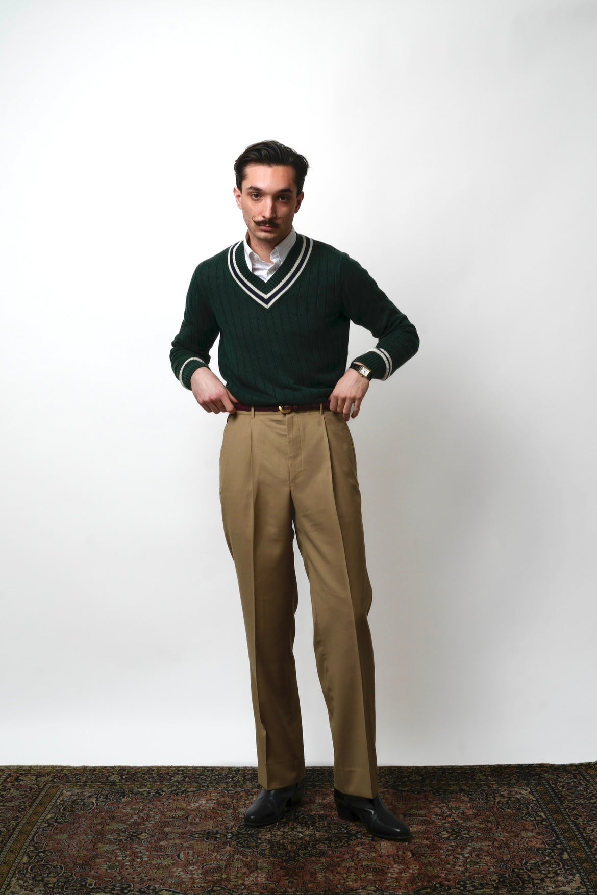 Ce pantalon est fabriqué dans une laine beige 280g en 120's du grand drapier Anglais Huddersfield, exclusivement sélectionnée pour Carthage dans une logique de respect d'un équilibre de qualité et de confort.